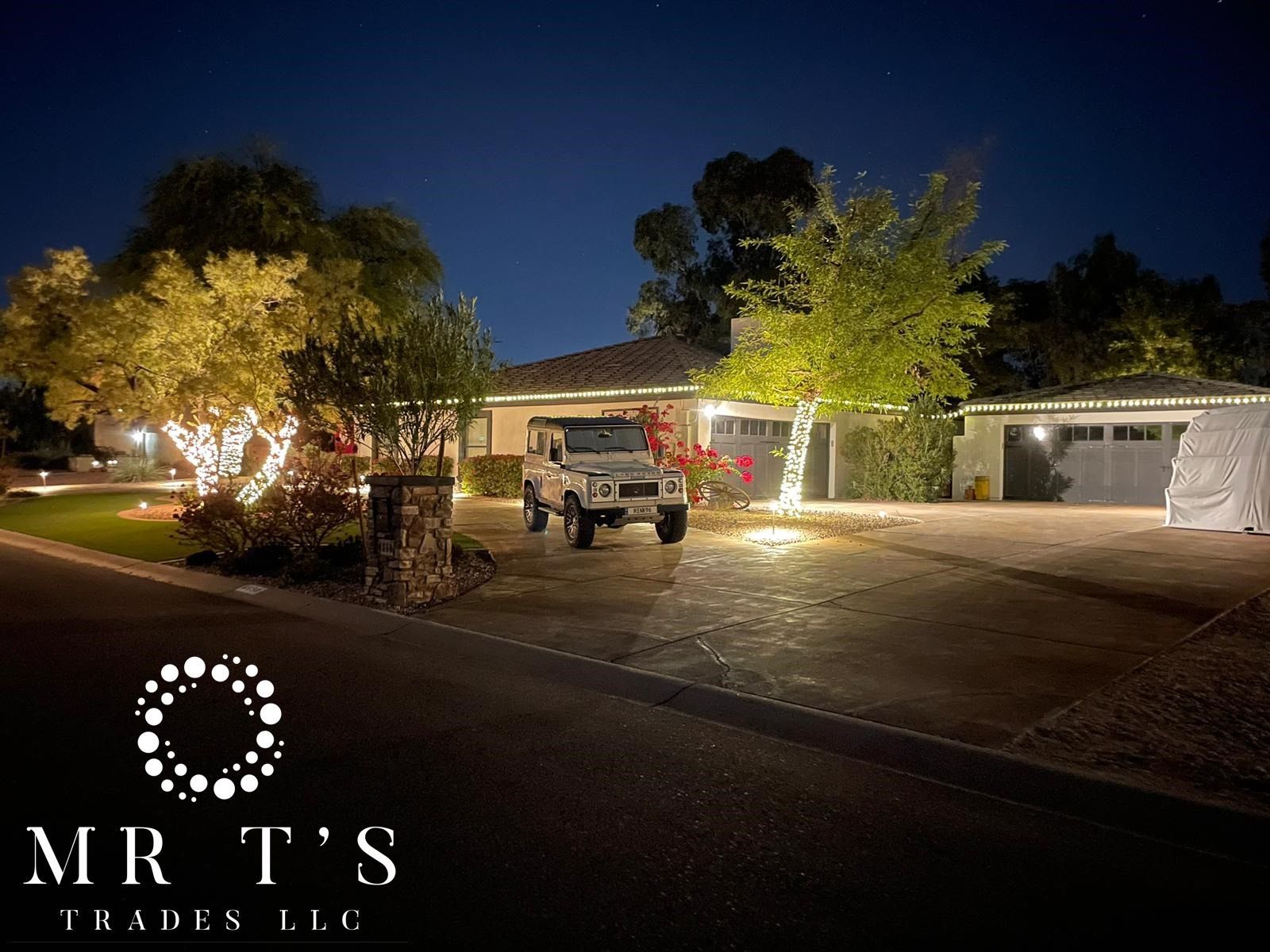 This season, let Mr. T’s Trades LLC handle the climbing, wiring, and decorating. We design and install professional holiday light displays that make your home shine — without the stress. From classic white elegance to colorful, custom looks, we bring the holiday magic to life in Scottsdale and the surrounding areas.
